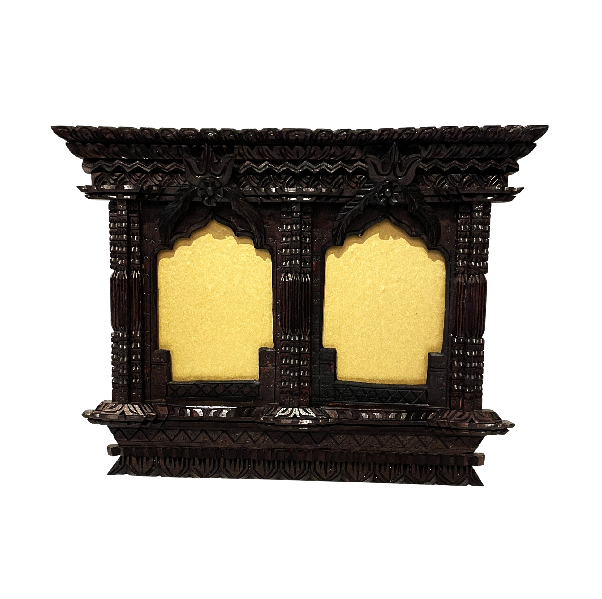 Udskåret billederamme i træ, lavet af en Newari håndværker i Nepal, Newari'erne er en etnisk gruppe som har levet i Kathmandu Dalen i årtusinder, som blandt andet opfandt pagode stilen. Newari håndværkere har i århundreder lavet træskærerarbejder, støbt statuer til det Tibetanske marked og malet Thanga'er, en tradition der fortaber i historien.