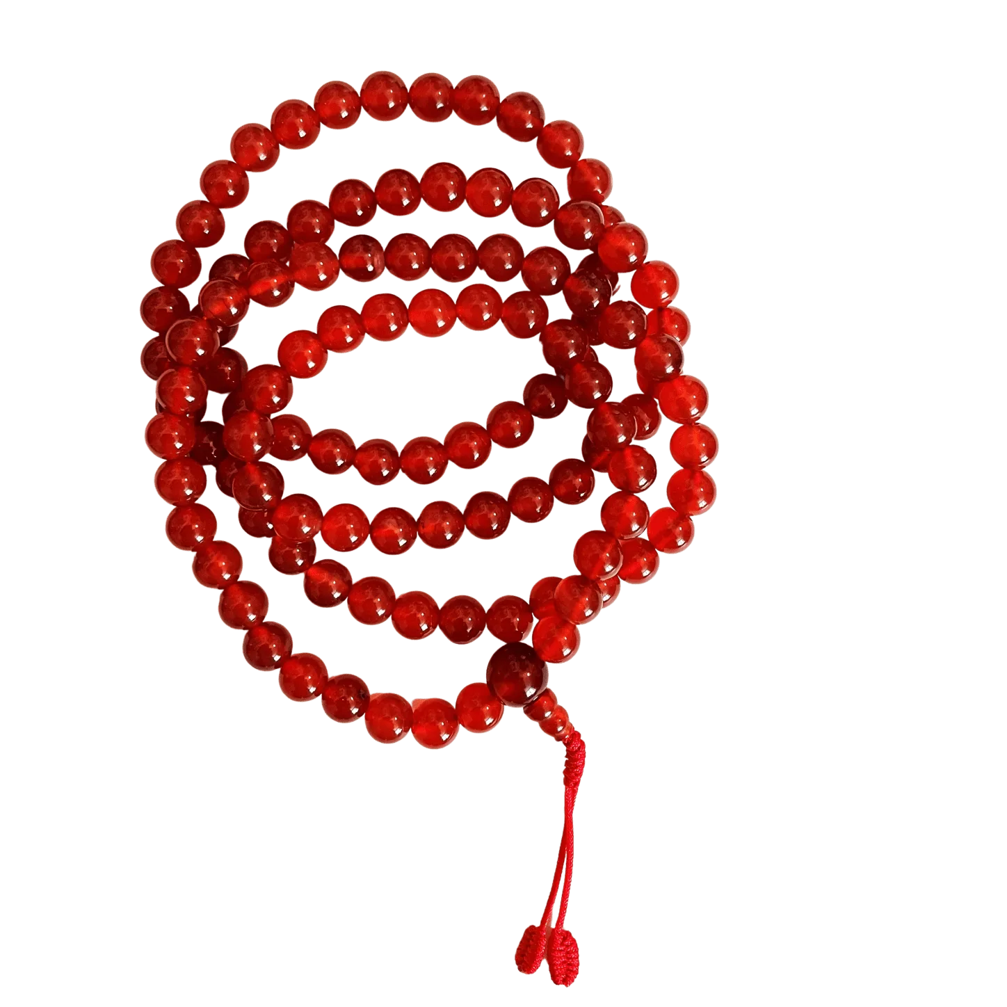 En Mala indeholder oftest 108 perler, og man gentager sit mantra eller sin bøn samtidig med at man med tommelfingeren “bladrer” frem i bede kransen.