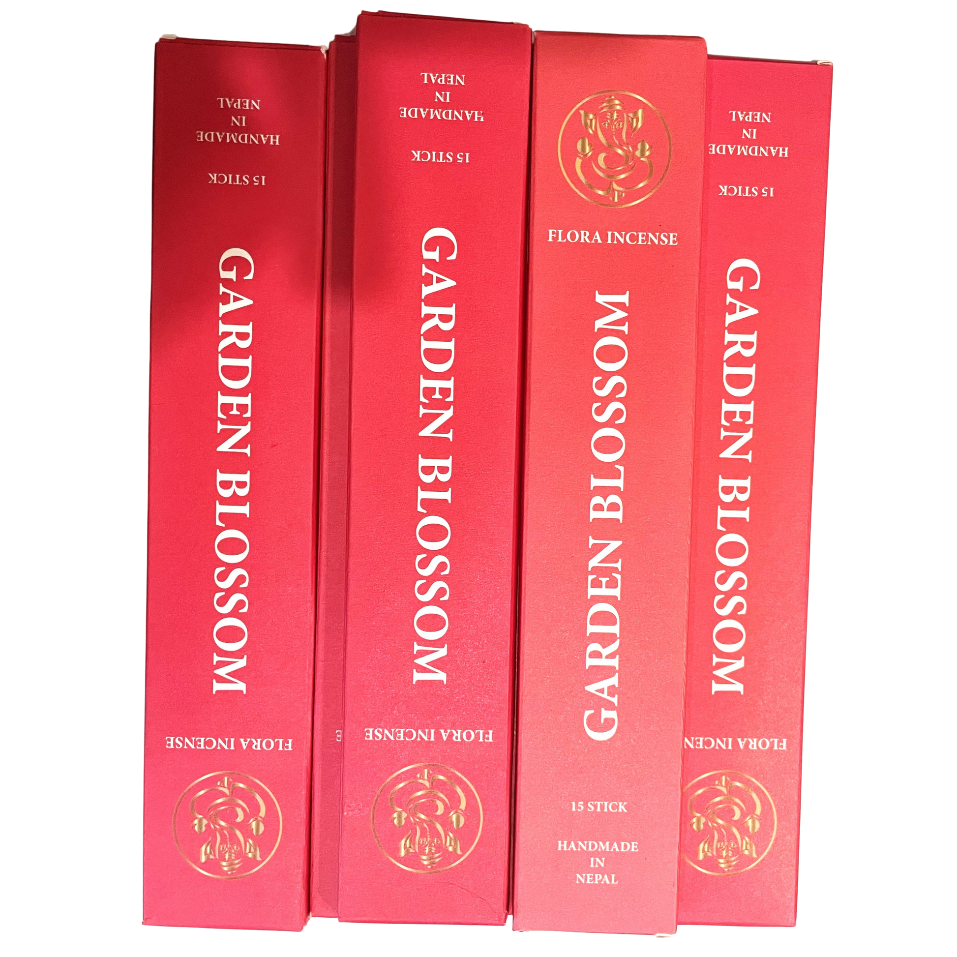 Garden Blossom Røgelse lavet i Nepal af Himalayan Incense & Crafts indeholder 15 pinde og er meget sød i duft som driver væk negativ energi. Det får dig til at føle dig entusiastisk og giver dig et frisk pust. En følelse af sødme, og er en øjeblikkelig humørforstærker samt afstressende. Når røgelse brænder og duften spredes, symboliserer det duften af ren moralsk opførsel. Det minder os om at kultivere god opførsel.