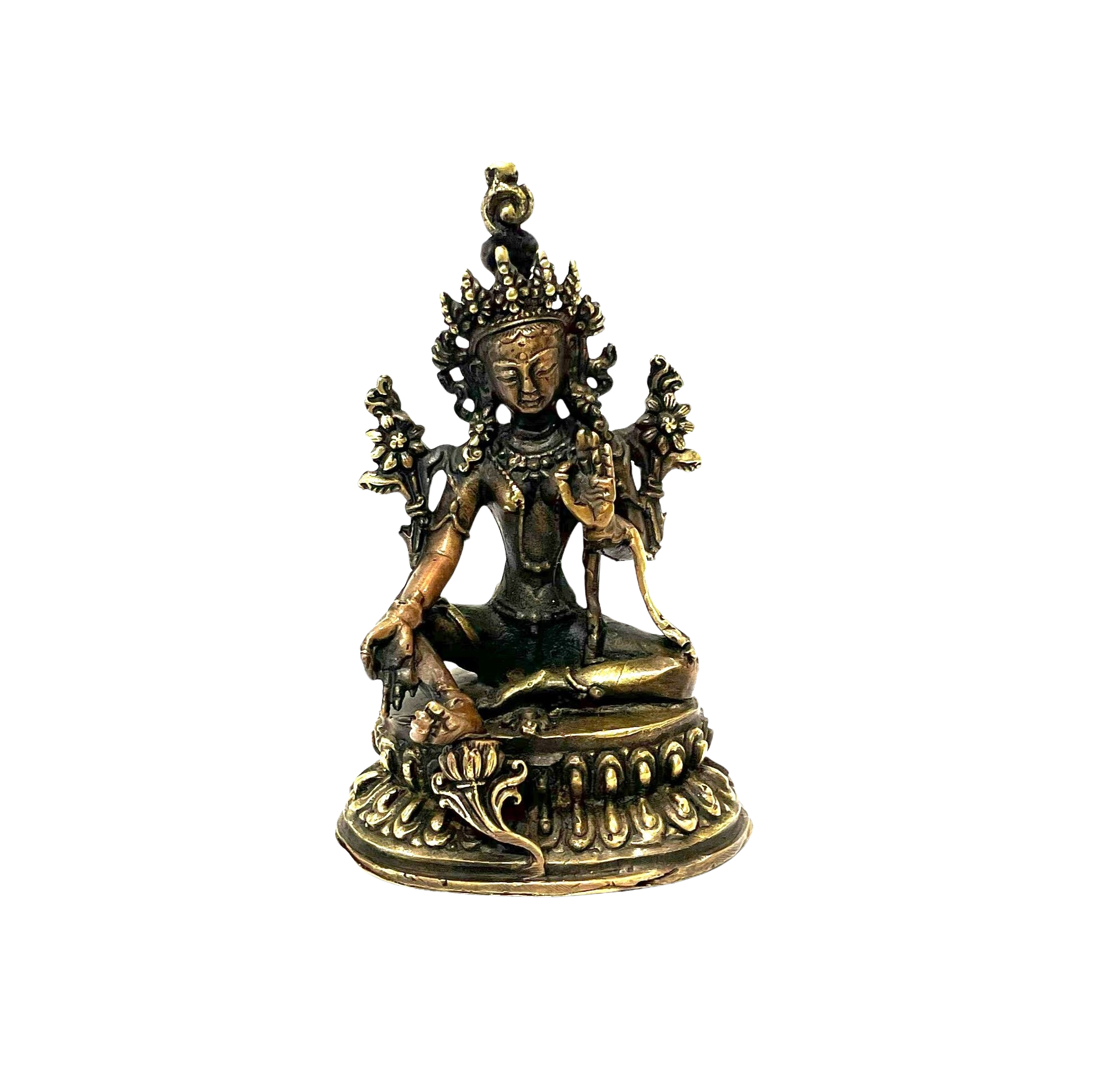 Grøn Tara støbt i messing efter "lost wax" metoden.