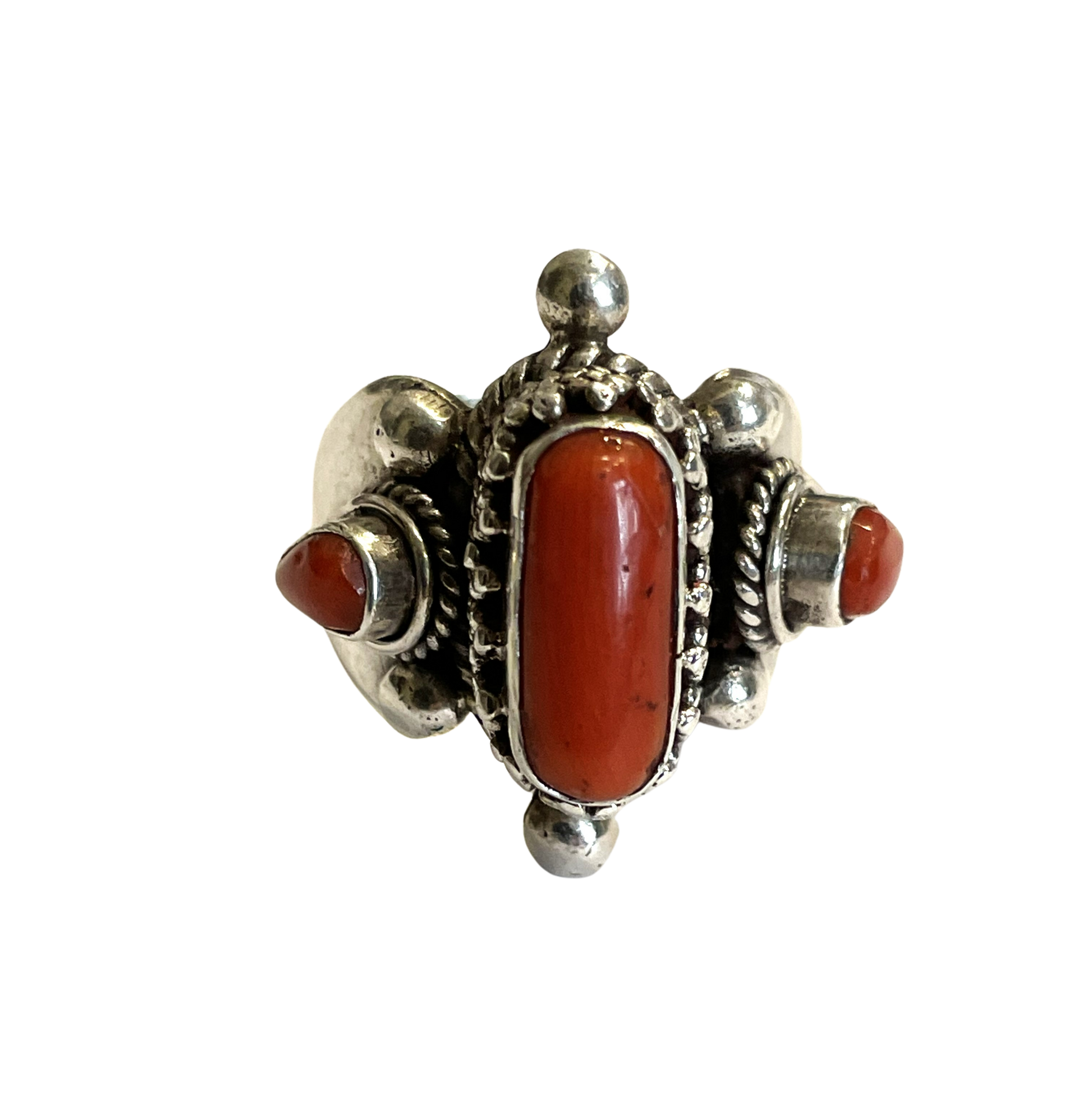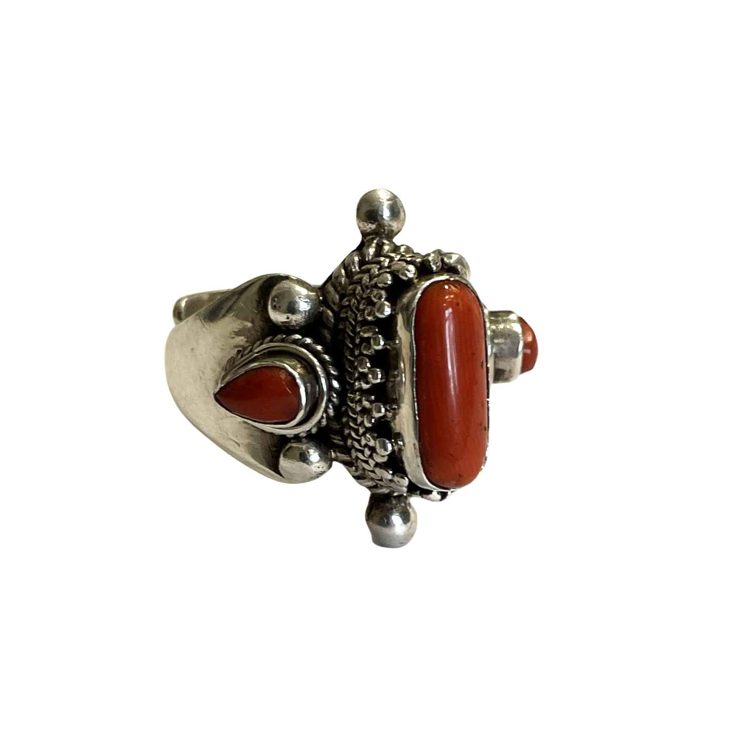 Kampa Ring med ægte koraler i 98 % sølv og 2 % kobber.