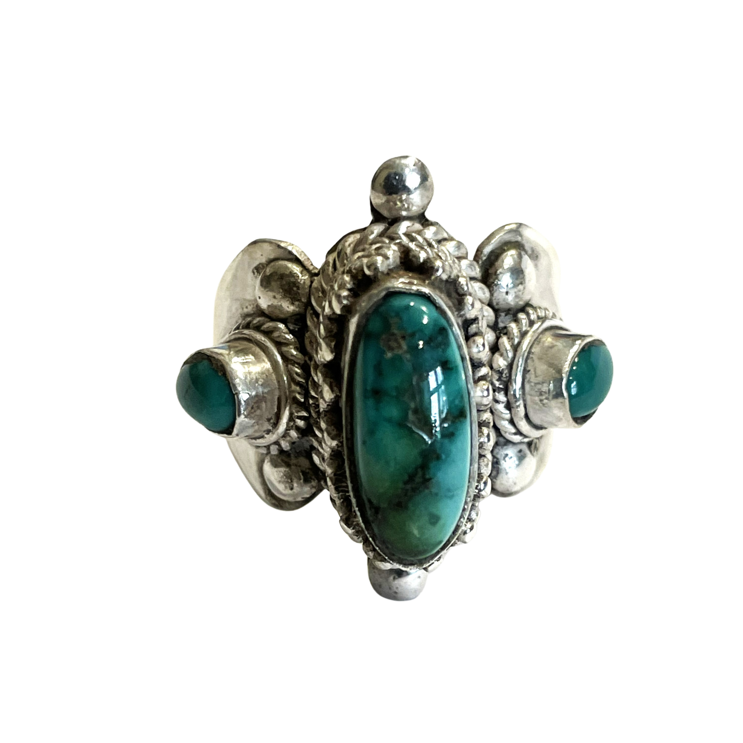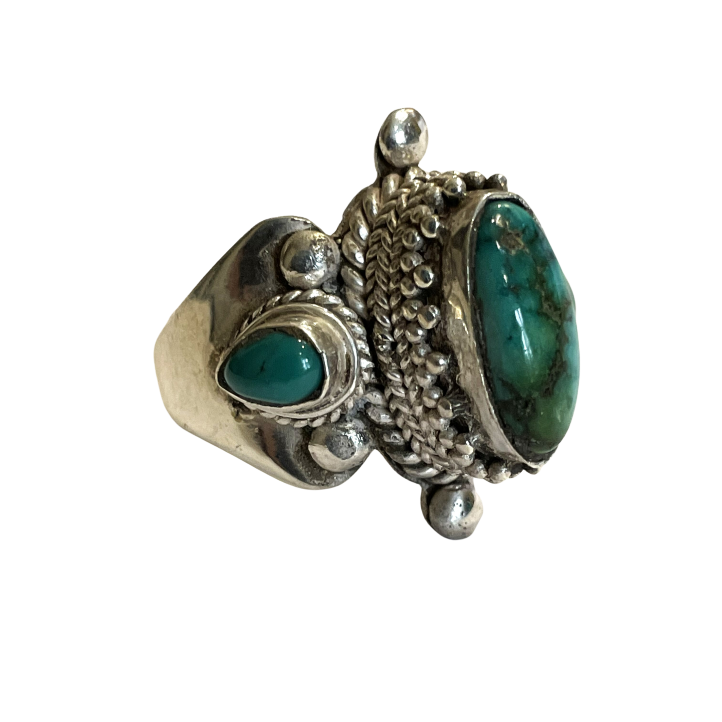 Kampa Ring med turkiser i 98 % sølv og 2 % kobber.