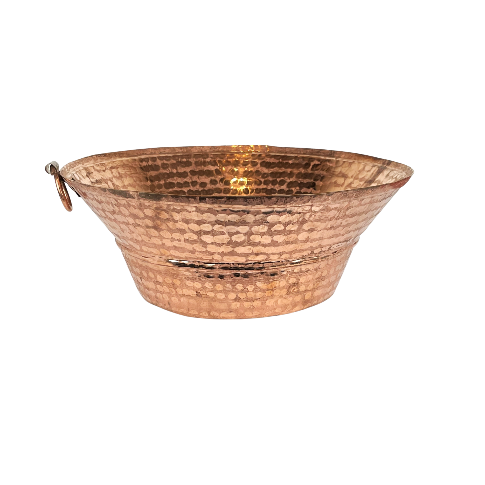Håndlavet kobber skål der er banket op med ring der oprindeligt