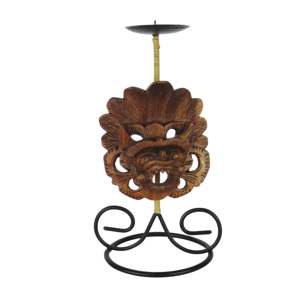 Lysestage i metal og udskåret træ fra Bali.