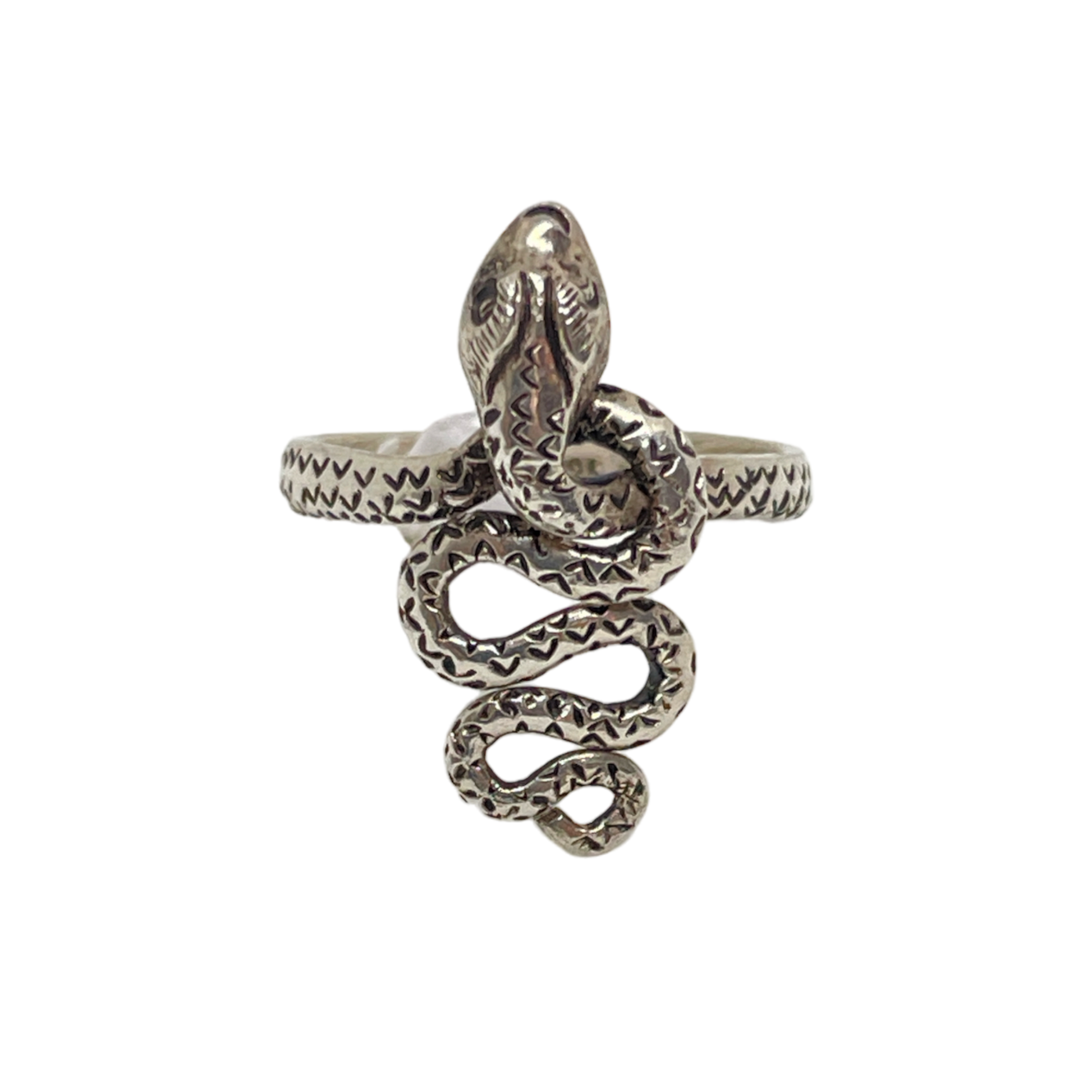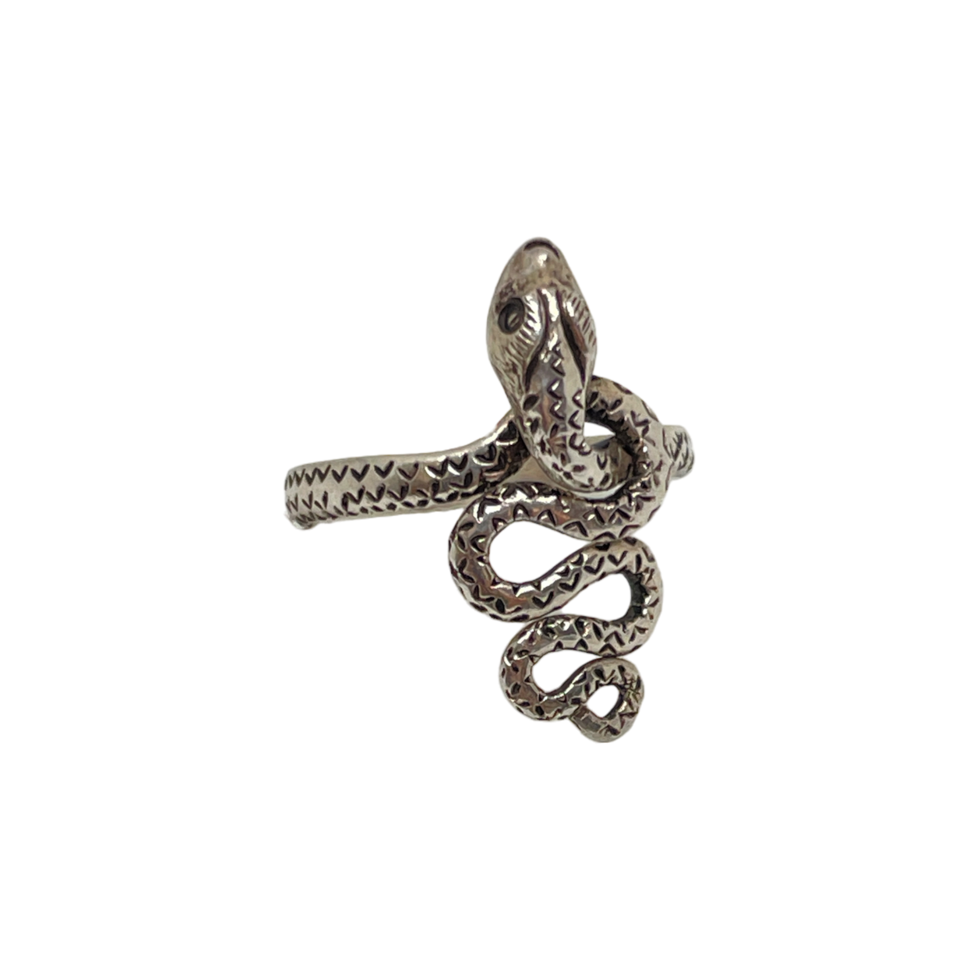 Sølv Naga (Slang) som vrider sig om sig med detaljerede skalaer. Ringen omslutter din finger som en lille slange og kan justeres en lille smule i størrelsen.