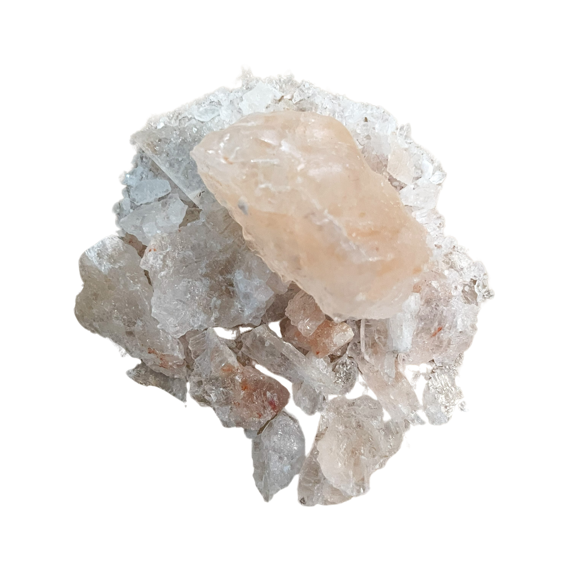 Her er noget sundt salt som har en rigtig god smag, der er lidt æggeagtig. Brug det som salt i en kværn eller tag en klump og læg den i et glas med vand og lad det stå og trække. Hver morgen dækker du bunden af et glas med opløsningen og fylder op med vand.