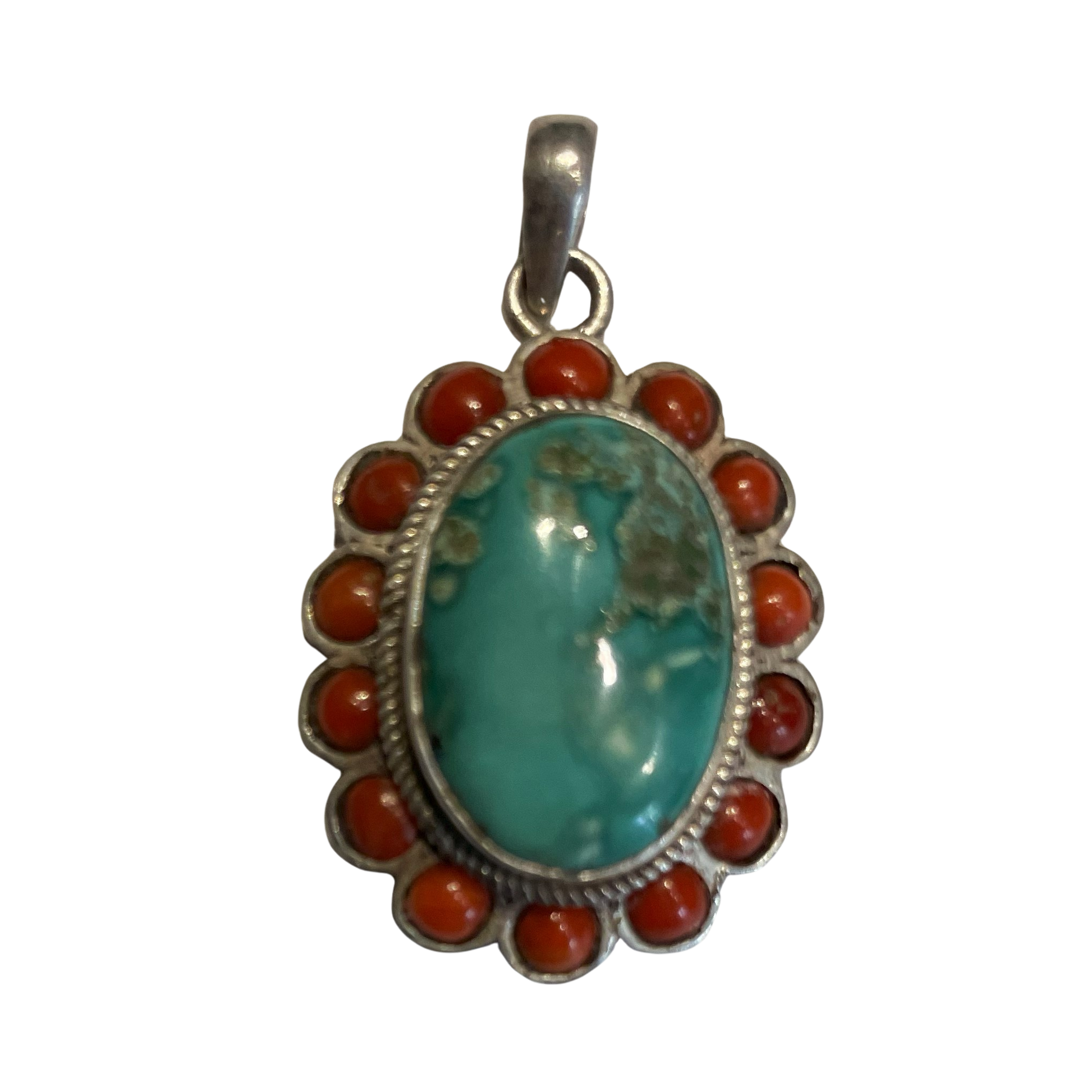 Vedhæng med Turkis og Koral i Sterling Sølv ( 0,925 )