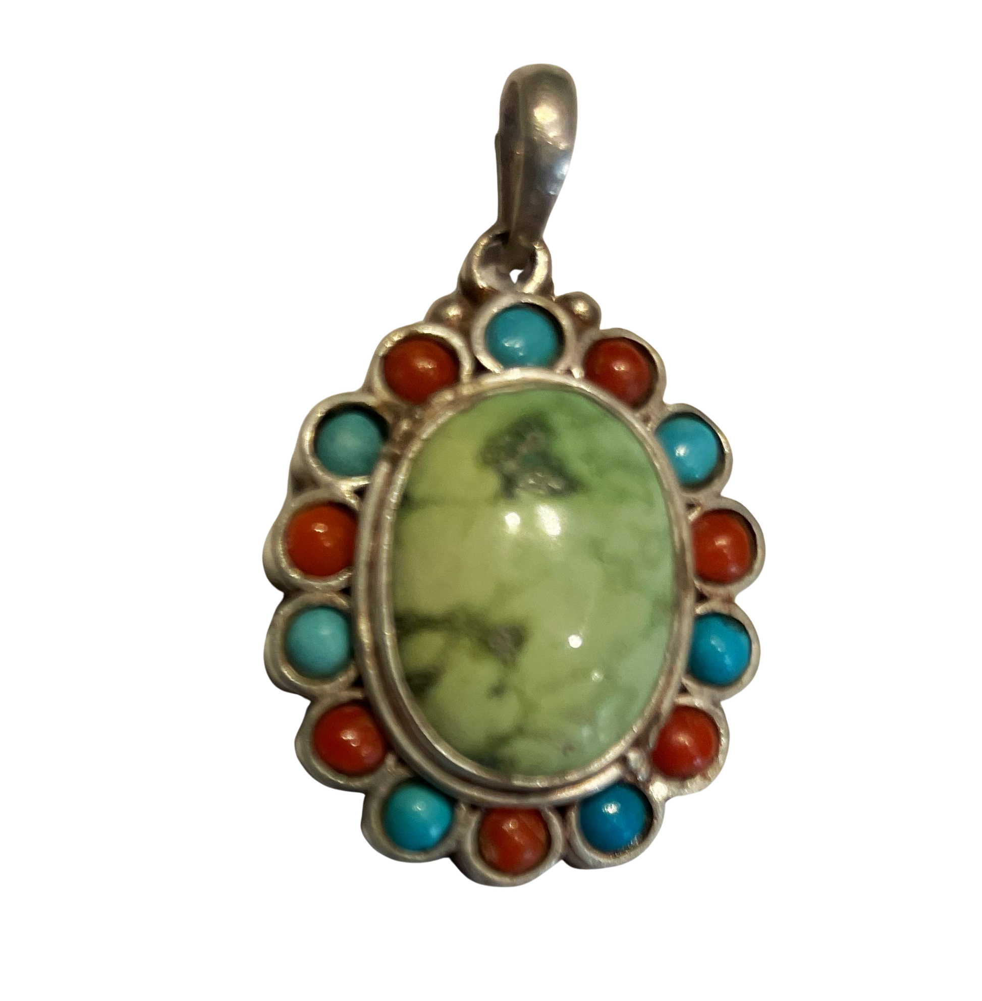 Vedhæng med Turkis og Koral i Sterling Sølv ( 0,925 )