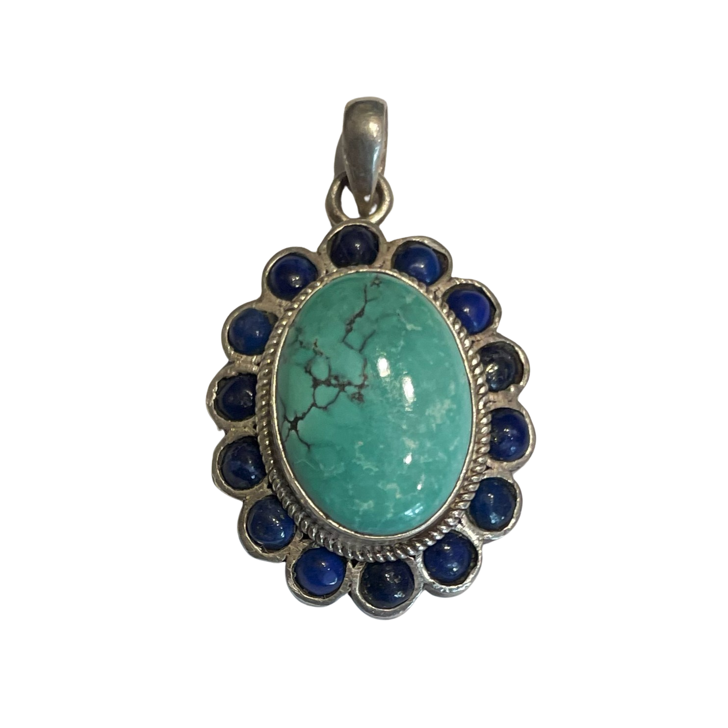 Vedhæng med Turkis og Lapis Lazuli i Sterling Sølv ( 0,925 )