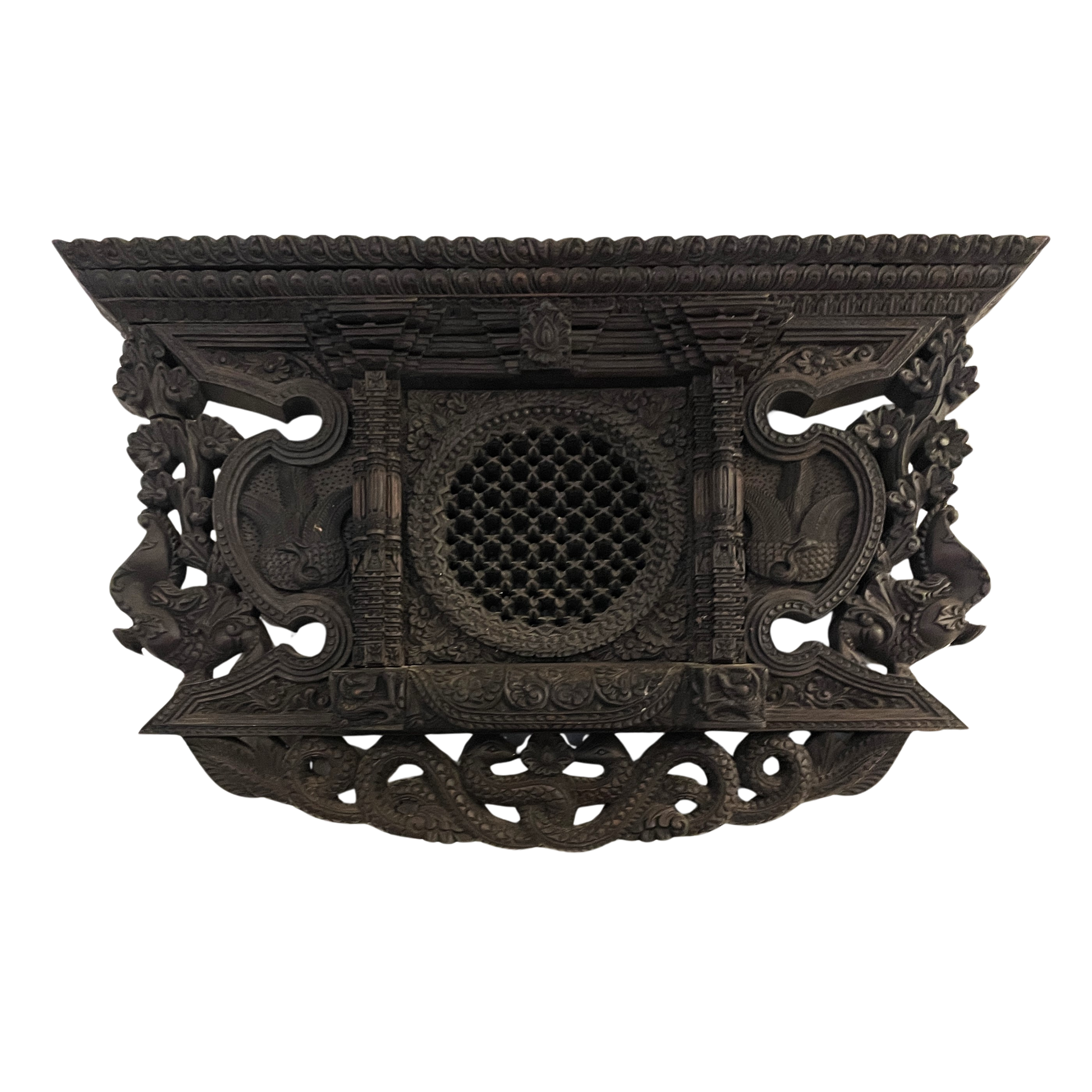 Udskåret Vægophæng i træ, lavet af en Newari håndværker i Nepal, Newari'erne er en etnisk gruppe som har levet i Kathmandu Dalen i årtusinder, som blandt andet opfandt pagode stilen. Newari håndværkere har i århundreder lavet træskærerarbejder, støbt statuer til det Tibetanske marked og malet Thanga'er, en tradition der fortaber i historien.